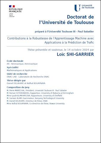 Dans sa thèse intitulée « Contributions à la Robustesse de l'Apprentissage Machine avec Applications à la Prédiction de Trafic » réalisée à l’ENAC sous la direction de Daniel Delahaye (ENAC) et Nidhal Bouaynaya (Rowan University), Loïc Shi-Garrier s’est intéressé à ces enjeux en étudiant la vulnérabilité des réseaux de neurones aux attaques adversariales et en développant des méthodes pour renforcer leur robustesse. La thèse aborde également la prédiction de la congestion de l'espace aérien et la quantification de l’incertitude des modèles d'apprentissage profond.